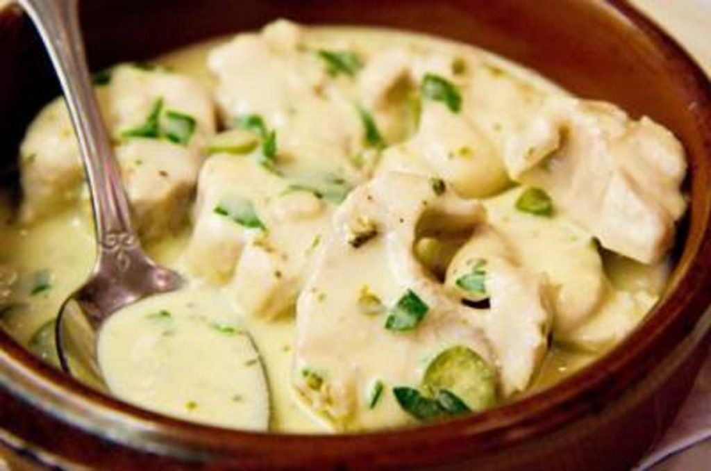 Αλατίζουμε το ψάρι τουλάχιστον 2 ώρες πριν και το βάζουμε σε μία μικρή ρηχή κατσαρόλα. Βάζουμε κρύο νερό, τόσο, ώστε τα κομματάκια του ψαριού να σκεπαστούν λίγο. Έπειτα βάζουμε στη φωτιά το σκεύος μας. Όταν αρχίσει να βράζει προσθέτουμε το λάδι και σε 15-20 λεπτά τη μουστάρδα, τα μπαχαρικά και το χυμό λεμονιού. Κουνάμε καλά την κατσαρόλα και σε 1 λεπτό το κατεβάζουμε. Είναι έτοιμο.