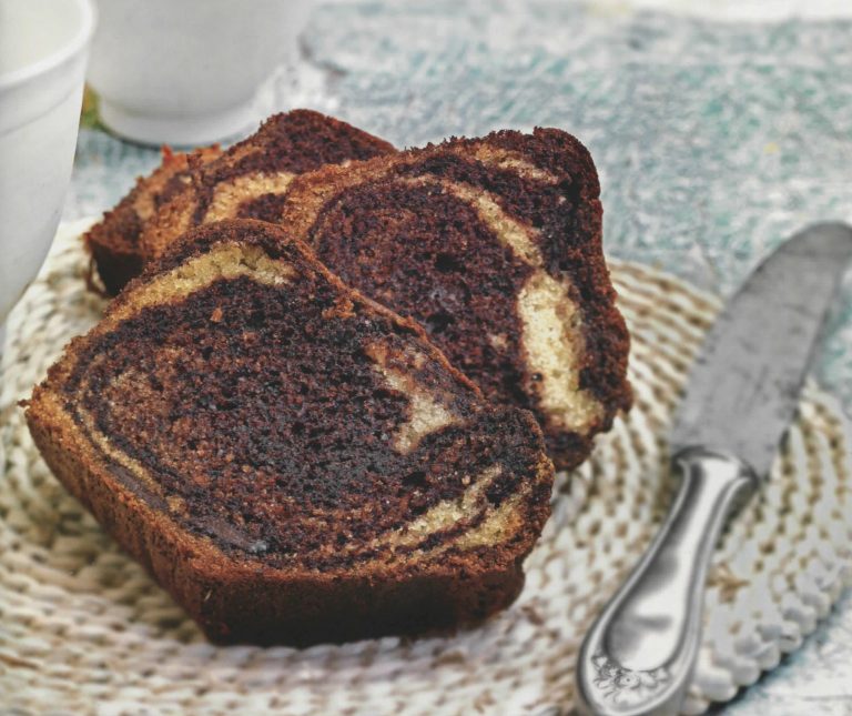 Η γεύση του αλλά και το σχέδιο του που θυμίζει νερά μαρμάρου, είναι αυτά που το κάνουν ιδιαίτερο. Τα δύο μείγματα, το ανοιχτόχρωμο και το σκουρόχρωμο κέικ, μπλέκονται μεταξύ τους στη φόρμα και μας δίνουν αυτό το εντυπωσιακό αποτέλεσμα. Στην ουσία, δεν χρησιμοποιούμε κάποιο ιδιαίτερο υλικό, απλά ο τρόπος που μπλέκονται τα δύο μείγματα κάνουν αυτά “τα νερά”.