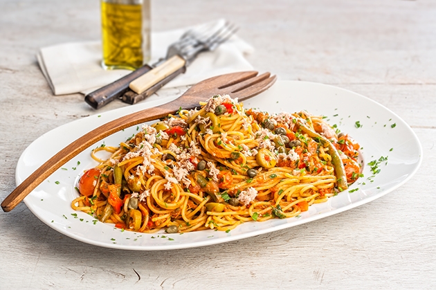 Μακαρόνια με τόνο και κόκκινη σάλτσα