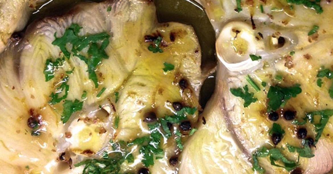 Αλατίζουμε το ψάρι τουλάχιστον 2 ώρες πριν και το βάζουμε σε μία μικρή ρηχή κατσαρόλα. Βάζουμε κρύο νερό, τόσο, ώστε τα κομματάκια του ψαριού να σκεπαστούν λίγο. Έπειτα βάζουμε στη φωτιά το σκεύος μας. Όταν αρχίσει να βράζει προσθέτουμε το λάδι και σε 15-20 λεπτά τη μουστάρδα, τα μπαχαρικά και το χυμό λεμονιού. Κουνάμε καλά την κατσαρόλα και σε 1 λεπτό το κατεβάζουμε. Είναι έτοιμο.