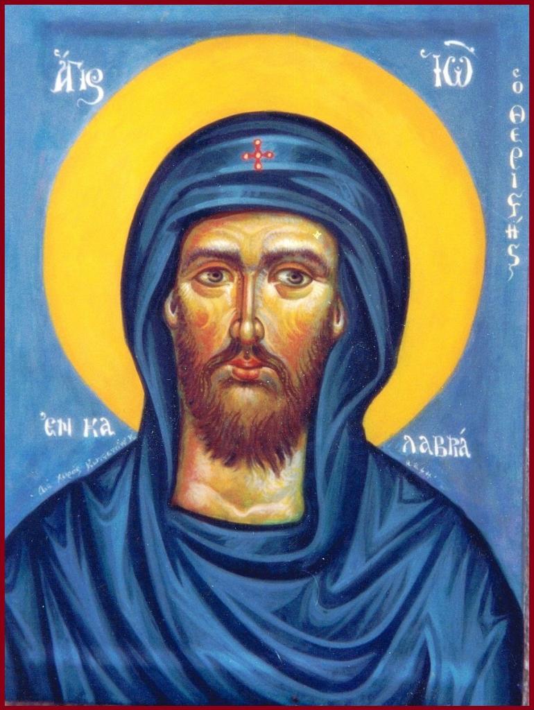 Η ιστορία δεν διέσωσε την ακριβή ημερομηνία κατά την οποία ο Όσιος κοιμήθηκε με ειρήνη και αναπαύθηκε στους κόλπους του Αβραάμ. Η παράδοση θέλει την εορτή της μνήμης του Αγίου αυτή την ημέρα, μαζί με την εορτή της ευρέσεως της Τιμίας κεφαλής του Αγίου Ιωάννου του Προδρόμου, γιατί ο Όσιος Ιωάννης ήταν ένας πρόδρομος της σωτηρίας, ένας νέος πρόδρομος της βασιλείας των ουρανών.