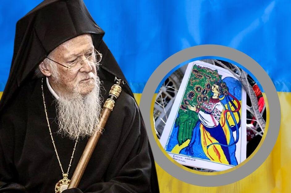 Για την φετινή πασχαλινή ευχετήρια κάρτα του ως κεντρικό θέμα επιλέχθηκε ο πόλεμος στην Ουκρανία. Επιλέχθηκε δηλαδή η ζωγραφιά ενός παιδιού, μιας κοπέλας από την Ουκρανία, για να κοσμήσει την επίσημη κάρτα του Οικουμενικού Πατριαρχείου.