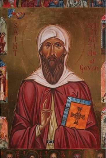 Ο Άγιος Κωνσταντίνος έζησε κατά τον 6ο αιώνα μ.Χ. Λέγεται ότι ήταν Βρετανός βασιλέας, ο οποίος μετά τον θάνατο της συζύγου του παραιτήθηκε από τον θρόνο υπέρ του υιού αυτού και έγινε μοναχός στη μονή του Αγίου Δαβίδ, προστάτη της Ουαλίας. Συνεργάσθηκε με τον Άγιο Κολούμπα (τιμάται 9 Ιουνίου) για την διάδοση του Ευαγγελίου στους Πίκτες της Σκωτίας, ίδρυσε μονή και μαρτύρησε από τους ειδωλολάτρες το 576 μ.Χ.