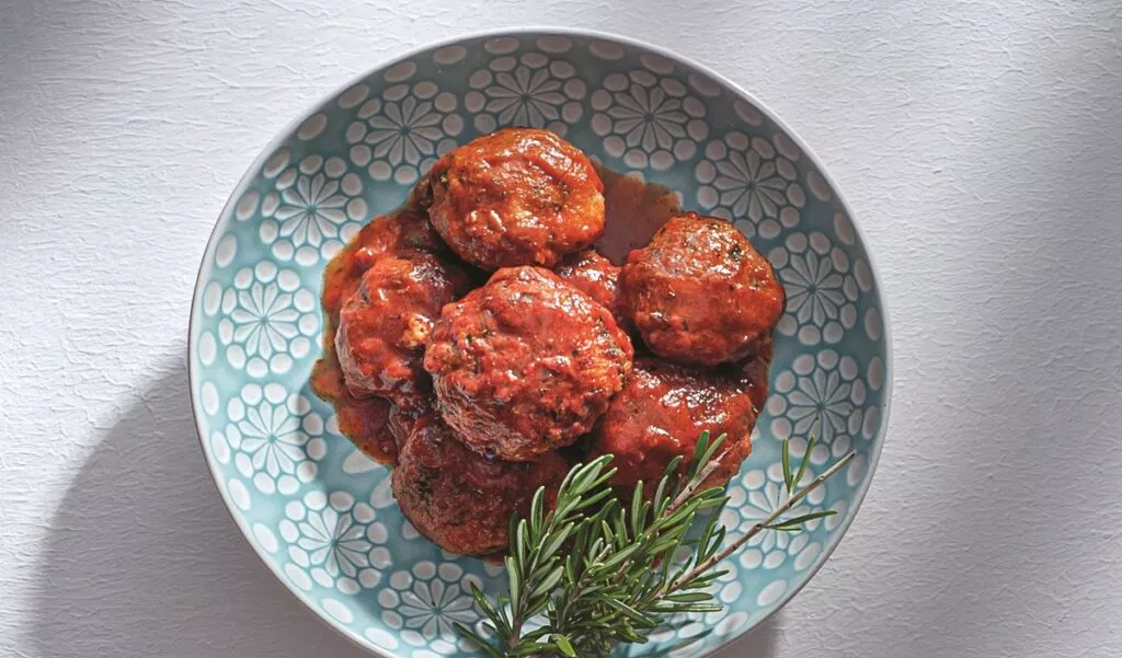 Αλευρώνουμε και τηγανίζουμε τα κεφτεδάκια σε καυτό λάδι μέχρι να πάρουν ένα χρυσαφένιο χρώμα. Τα βγάζουμε σε χαρτί κουζίνας και τα ρίχνουμε στο τηγάνι με τη σάλτσα. Κλείνουμε με το καπάκι και μαγειρεύουμε σε χαμηλή φωτιά για 5΄. Συνεχίζουμε το μαγείρεμα χωρίς καπάκι μέχρι να δέσει η σάλτσα. Σερβίρουμε με μπόλικο ψωμί για βούτες.