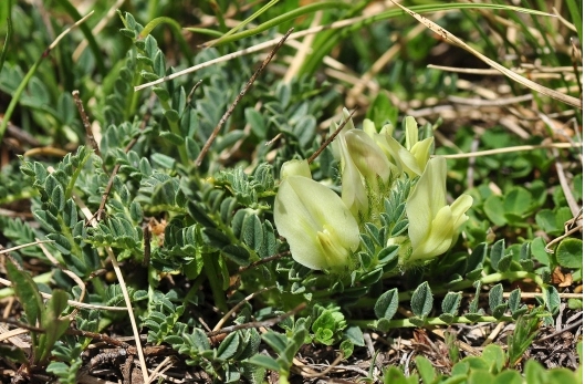 Πολυετής, χαμηλός, προσκεφαλόμορφος θάμνος, με πολλές διακλαδώσεις. Φύλλα μήκους από 2 έως 5 εκατοστά, πτεροσχιδή με 6 ή 7 ζεύγη γραμμοειδών – λογχοειδών τριχωτών φυλλαρίων που καταλήγουν σε αγκάθι. Άνθη 10 έως 12 χιλιοστών ανά ζεύγη, στις μασχάλες των φύλλων. Πέτασος λευκορόδινος, πτερύγια και τρόπιδα σε κίτρινο ανοιχτό χρώμα. Έχει ρίζα υπόλευκη, ινώδη, που αυξάνεται πλαγίως.