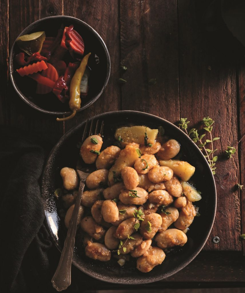 Σε αυτό το φαγητό ταιριάζει και η απαλή μουστάρδα (προσθέστε 1 κουτ. σούπας) ή λίγο λευκό κρασί με το οποίο θα σβήσουμε τα φασόλια πριν προσθέσουμε τον ζωμό.