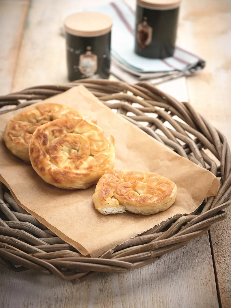 Περιχύνετε περιμετρικά την επιφάνεια κάθε φύλλου με λάδι και πασπαλίζετε με τη φέτα, τον άνηθο (αν χρησιμοποιήσετε) και φρεσκοτριμμένο πιπέρι. Τυλίγετε σε ρολό. Κατόπιν, στρίβετε το κάθε ρολό σε σαλιγκάρι.