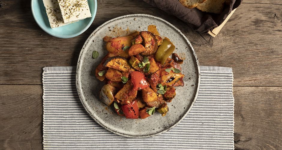 Κουνάμε το πυρίμαχο σκεύος να απλωθούν τα λαχανικά και να καλυφθούν με τη σάλτσα και ψήνουμε για 40΄ ή μέχρι να μαγειρευτούν τα λαχανικά και να μείνουν με τη σάλτσα τους.