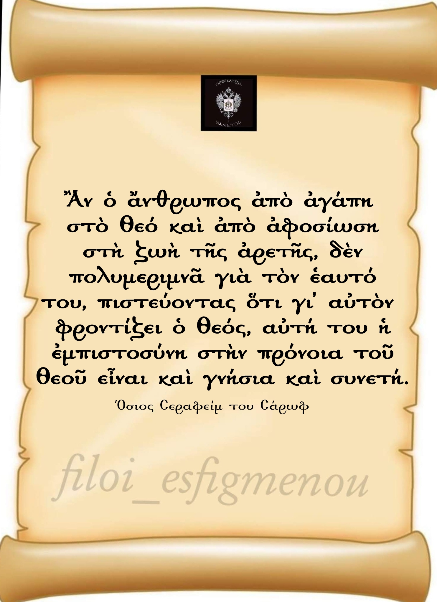 ''Οι φίλοι του Χριστού αγαπούν τους πάντες αληθινά, δεν αγαπιούνται όμως από όλους. Οι φίλοι του κόσμου επίσης δεν αγαπιούνται από όλους. Και οι φίλοι του Χριστού διατηρούν την αγάπη συνεχώς μέχρι τέλους, ενώ οι φίλοι του κόσμου μέχρις ότου συγκρουσθούν μεταξύ τους για πράγματα του κόσμου.''