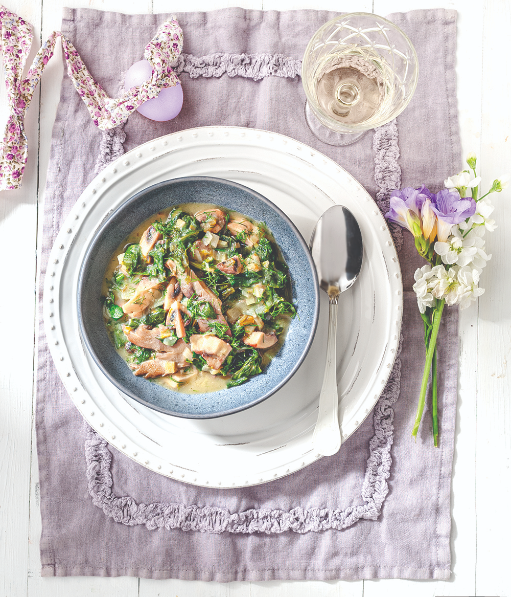 Vegan μαγειρίτσα με μανιτάρια, χόρτα και μάραθο