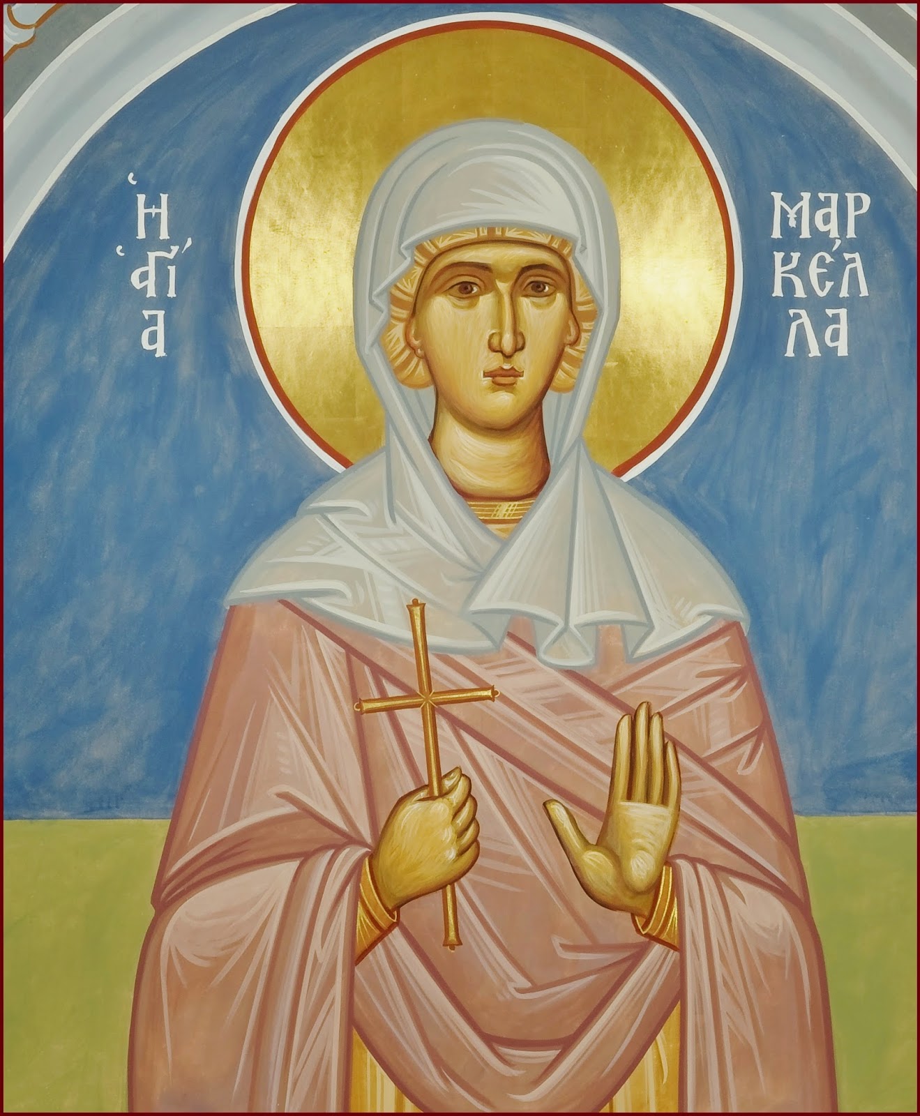 Τοῦ Κυρίου τοῖς νόμοις, καὶ τοῖς θείοις διδάγμασι, πειθομένη Μαρκέλλα, καὶ ἀμέμπτως φυλάττουσα, τὴν βίαν πτοηθεῖσα τοῦ πατρὸς, ὦ Νύμφη ἀκήρατε Χριστοῦ, ἐν τοῖς ὄρεσιν ηὐλίζου, ἐν οἷς διώκων εὑρίσκει καὶ ἐκτείνει σε· δόξα τῷ δεδωκότι σοι ἰσχὺν, δόξα τῷ σὲ στεφανώσαντι, δόξα τῷ ἐνεργοῦντι διὰ σοῦ πᾶσιν ἰάματα.