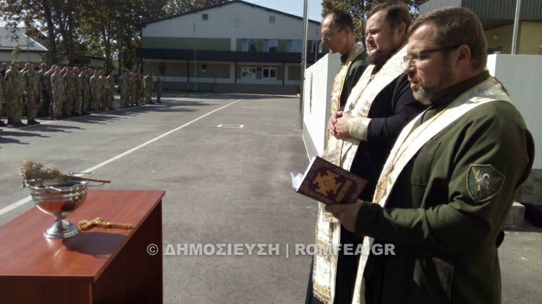 Μετά το πέρας της συμπροσευχής, ο Επίσκοπος Βαρσανούφιος ράντισε όλους με αγιασμό και απηύθυνε στους στρατιώτες κήρυγμα διδακτικού περιεχομένου.