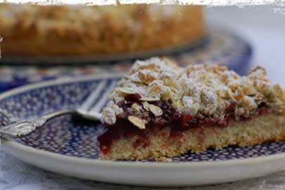 Στο άλλο κομμάτι προσθέτουμε τα αμύγδαλα. Απλώνουμε επάνω την μαρμελάδα και την καλύπτουμε με την υπόλοιπη ζύμη που την δουλεύουμε κατά τον ίδιο τρόπο.