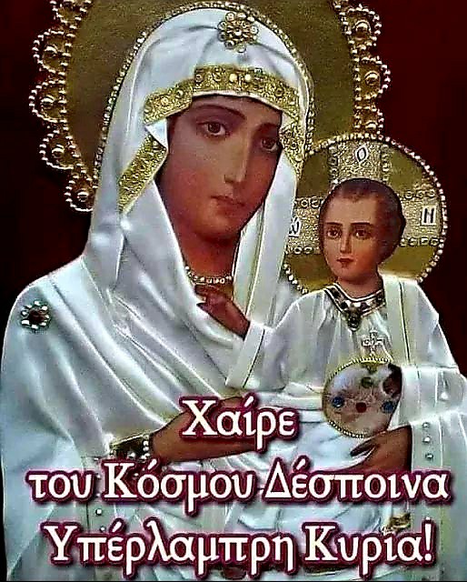 Δέσποινα πανύμνητη και πανάγαθη, η πηγή της ευσπλαχνίας, η άβυσσος της φιλανθρωπίας, το ζωντανό νερό, η προστάτρια εκείνων που αμαρτάνουν και το λιμάνι εκείνων που πέφτουν σε θύελλα· εσύ που δέχθηκες στα σπλάχνα σου τον Θεό ασπόρως και που στάθηκες άξια να γίνεις Μητέρα του Θεού·