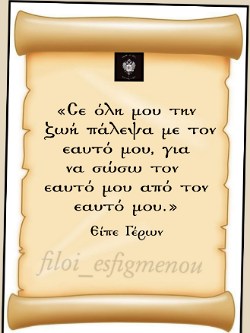 Κι ἐσένα θὰ σὲ βοηθήσει ὁ Θεός. Μὴν Τὸν ξεχνᾶς, καὶ δὲν θὰ σὲ ἀφήσει. Θὰ νικήσεις, καὶ θὰ εἶναι γλυκιὰ ἡ νίκη εἰς τοὺς αἰῶνες τῶν αἰώνων.