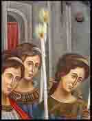 Σὲ μιὰ γιορτή, ὅπου ἦταν μαζεμένη ὅλη ἡ πόλη στὴν Ἐκκλησία τῆς Μητρόπολης καὶ ἕνας Πνευματικὸς ἔκανε διδασκαλία, ἦταν ἐκεῖ καὶ ἡ μητέρα μὲ τὶς δυὸ κόρες της. Στὴ μέση της διδαχῆς καὶ ἐνῶ ὁ διδάσκαλος ξεκουραζόταν λίγο, βλέπουν ὅλοι ἕναν ὡραιότατο ἄγγελο νὰ μπαίνει ἀπὸ ἕνα παράθυρο κρατώντας στὰ χέρια τοῦ δύο ὡραία καὶ θαυμάσια στεφάνια ἀπὸ λευκὰ τριαντάφυλλα καὶ ἄλλα εὐωδιαστὰ ἄνθη. Πλησιάζει τὶς δύο αὐτὲς νέες καὶ τοὺς λέει: