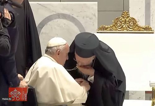 Ὁ Πατριάρχης Βαρθολομαῖος ἠσπάσθη τὸ ἐγκόλπιον τοῦ Πάπα!