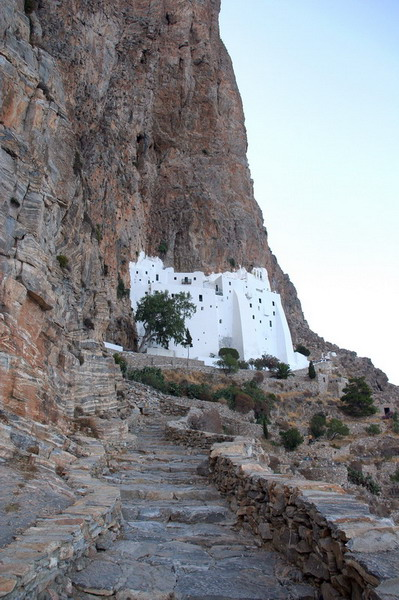 Στην Αμοργό, πάνω σε ένα γκρεμό 300 μέτρων με θέα τη θάλασσα, δεσπόζει σαν λευκό περιστέρι το ιστορικό και ξακουστό μοναστήρι της Παναγίας Χοζοβιώτισσας που τιμάται στα Εισόδια της Θεοτόκου.
