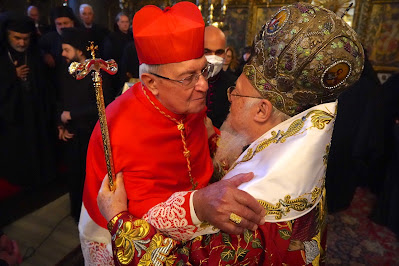 Στη συνέχεια, ο Παναγιώτατος αναφέρθηκε στην πορεία των σχέσεων Ορθοδόξου και Ρωμαιοκαθολικής Εκκλησίας και του διμερούς θεολογικού διαλόγου, εκφράζοντας την ικανοποίηση του για τη σημασία, “την οποίαν περιέγραψεν ο αδελφός Πάπας Φραγκίσκος εις την αρχήν της Συνοδικότητος της Εκκλησίας, την οποίαν περιέγραψεν ως την κυρίαν οδόν διά την Εκκλησίαν της τρίτης χιλιετίας”.
