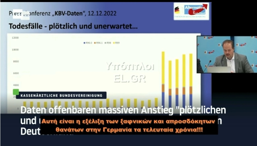 «Από το 2016 έως το 2020, κατά μέσο όρο 13 έως 18 άνθρωποι πέθαιναν καθημερινά στη Γερμανία. Ως αιτία θανάτου αναφέρθηκε μία από τις προαναφερθείσες διαγνώσεις. Αντίθετα, 97 άνθρωποι πέθαιναν [ξαφνικά και απροσδόκητα] ανά ημέρα το 2021. Το 1ο τρίμηνο του 2022, 104»