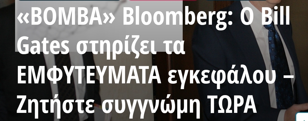 «ΒΟΜΒΑ» Bloomberg: O Bill Gates στηρίζει τα ΕΜΦΥΤΕΥΜΑΤΑ εγκεφάλου – Ζητήστε συγγνώμη ΤΩΡΑ