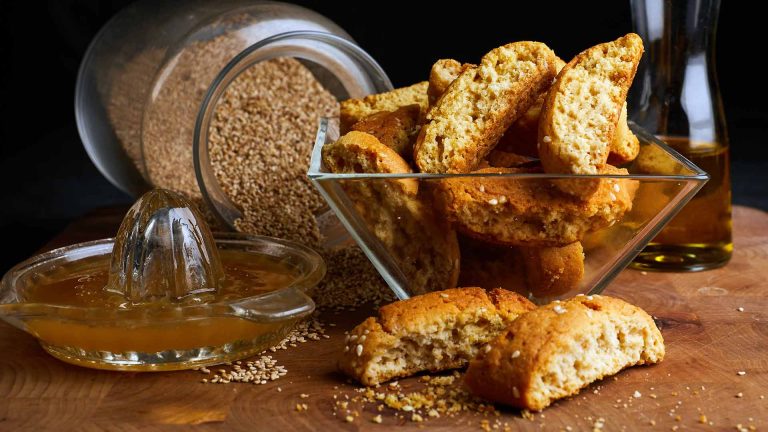 Τα ψήνουμε στους 160 °C στον αέρα, στη μεσαία σχάρα, για 30′ να ροδίσουν και να στεγνώσουν τελείως.