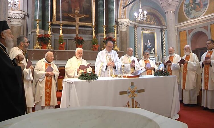 Χθες, Πρωτοχρονιά, στις 5 το απόγευμα, στον Καθεδρικό Ναό Αγίου Γεωργίου, στην Άνω Σύρο τελέστηκε πολυαρχιερατικό συλλείτουργο και δοξολογία για το Νέο έτος 2023 και την Ειρήνη στον κόσμο. Τίμησε με την παρουσία του την ιδιαίτερη αυτή στιγμή προσευχής της Καθολικής Εκκλησίας της Σύρου, ο Σεβασμιότατος Μητροπολίτης Σύρου Δωρόθεος Β΄, καθώς και εκπρόσωποι των τοπικών Στρατιωτικών Αρχών και των Σωμάτων Ασφαλείας, της Περιφέρειας Νότιου Αιγαίου και του Δήμου Σύρου Ερμούπολης, με επικεφαλής το Δήμαρχο κ. Νίκο Λειβαδάρα, καθώς και εκπρόσωποι φορέων.