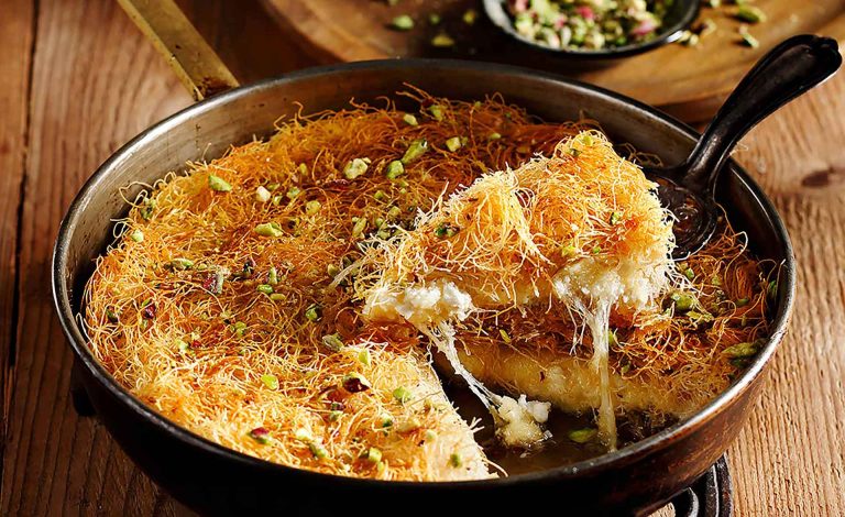Παραδοσιακά το κιουνεφέ στην Ανατολή, γίνεται σε τηγάνι και στο σερβίρουν καυτό, σιροπιάζοντάς το καυτό, μπροστά σου.
