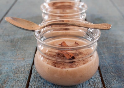 Με ένα κουτάλι σούπας βάζουμε κρέμα μέχρι να γεμίσει το μπολ και γαρνίρουμε με τριμμένη σοκολάτα.