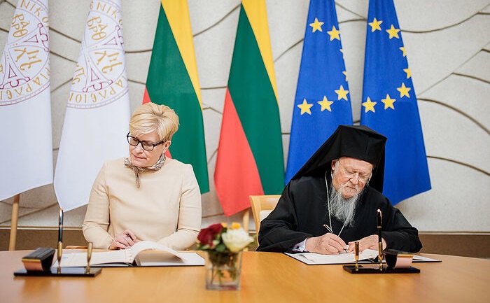 Καί μιά πού ἀναφέρθηκα σέ πρόσφατη ἀνάρτηση στό νέο ἐκκλησιαστικό σχίσμα πού προωθεῖ ἤδη ὁ Βαρθολομαῖος , μέ τήν παράνομη ἐμπλοκή του αὐτή τή φορά στή Λιθουανία, τόν βλέπουμε ἐδῶ νά ὑπογράφει συμφωνία συνεργασίας μέ τή Λιθουανή πρωθυπουργίνα Ἰνγκρίντα Σιμονιτέ, δια τῆς ὁποίας ἱδρύεται μία παράπλευρη ἐκκλησιαστική ἀρχή ἐκτός τῆς κανονικῆς Ὀρθόδοξης Λιθουανικής Ἐκκλησίας πού ὑπάγεται (ὅπως καί ἡ νόμιμη Οὐκρανική) στό Πατριαρχεῖο τῆς Μόσχας.