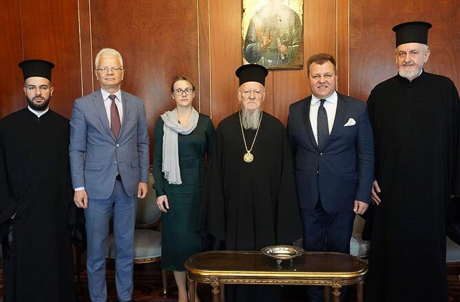 «Σήμερα ἀνοίγεται μπροστά μας μιά νέα προοπτική καί μιά εὐκαιρία νά ἐπιδιώξουμε ἀπό κοινοῦ τήν ἵδρυση τῆς Ἐξαρχίας τοῦ Οἰκουμενικοῦ Πατριαρχείου στή Λιθουανία» δήλωσε ὁ πρωτοκορυφαῖος δούρειος ἵππος τῆς Νέας Ἐποχῆς μετά τήν ὑπογραφή τῆς συμφωνίας, πού προετοιμαζόταν ἀπό τό φθινόπωρο τοῦ 2022, ὅταν Λιθουανοί πολιτικοί ἐπισκέφτηκαν τόν Ἀρχοντώνη στό Φανάρι (2η φωτογραφία), γιά νά μεθοδεύσουν τήν ἐξουδετέρωση τῆς κανονικῆς Λιθουανικής Ἐκκλησίας (κατά παρόμοιο τρόπο μέ ὅ,τι ἔγινε καί πρό ἐτῶν στήν Οὐκρανία).