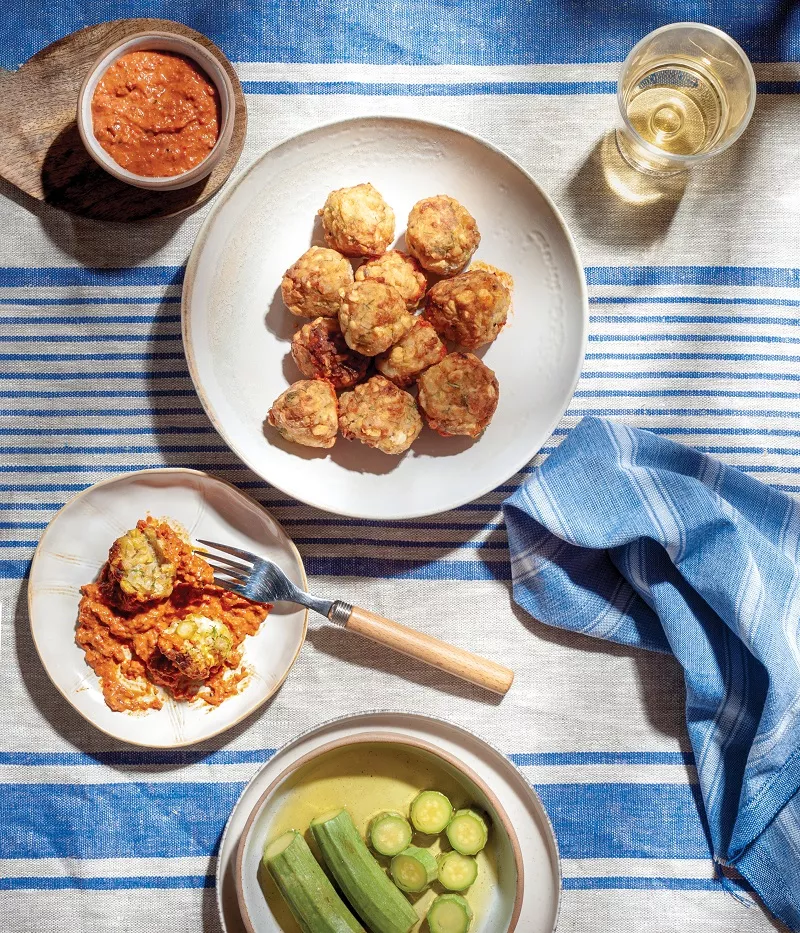 Vegan: Ρεβιθοκεφτέδες με δροσερή σάλτσα πιπεριάς