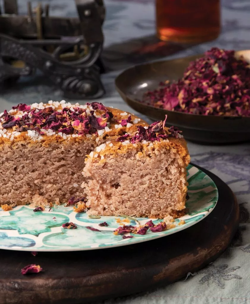 Πασπαλίζουμε με κρυσταλλική ζάχαρη και ψήνουμε σε προθερμασμένο φούρνο στους 160°C για 30΄-40΄. Αφήνουμε να κρυώσει και προαιρετικά σερβίρουμε με αφυδατωμένα ροδοπέταλα.