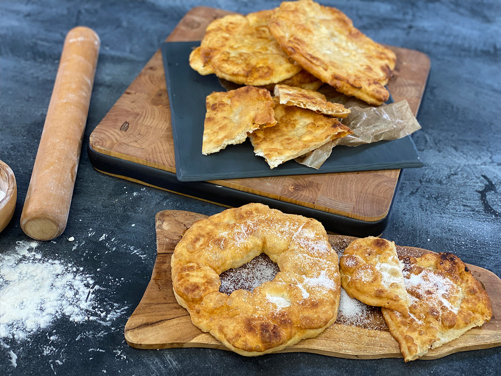 Τηγανόψωμα με γραβιέρα: Τα πασπαλίζουμε με τη γραβιέρα όσο είναι ζεστά. Εναλλακτικά, μπορούμε να σερβίρουμε τα τηγανόψωμα με μέλι και κανέλα ή να τα γεμίσουμε με φέτα αν μας αρέσει.