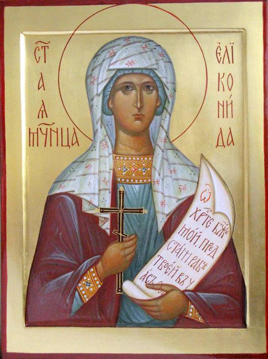 Η Αγία Ελικωνίδα έζησε στα χρόνια του βασιλιά Γορδιανού του Γ', στα μέσα του 3ου μ.Χ. αιώνα (238 - 244 μ.Χ.). Ήταν Θεσσαλονικιά αλλά μετακόμισε στην Κόρινθο, όπου καταγγέλθηκε σαν χριστιανή στον άρχοντα Περίνιο. Μάταια αυτός προσπάθησε να την αποσπάσει από τη χριστιανική πίστη. Εκείνη έμενε σταθερή και φώναζε ότι είναι χριστιανή. Εξοργισμένος τότε ο Περίνιος την έβρισε χυδαία και της ξύρισε το κεφάλι. Η Ελικωνίδα χαμογελώντας απάντησε: «Σείς, έπαρχε, θεωρείτε άνθρωπο κυρίως το σώμα, και την ομορφιά του, νομίζετε ότι είναι η κυριότερη ανθρώπινη αρετή, και πάνω σ' αυτή τη βάση στηρίζετε την ταπεινή και πρόσκαιρη ευτυχία σας. Αλλά για μας τους χριστιανούς, το επίγειο σώμα είναι όπως και το ρούχο. Αυτό κάποια μέρα θα παλιώσει και θα πεταχτεί. Επομένως ό,τι και αν κάνεις το φθαρτό σώμα μου δεν θα με ενοχλήσει, διότι δεν θα καταφέρεις να βλάψεις, με τη χάρη του Θεού, το σώμα της ψυχής μου, όπου εμείς οι χριστιανοί στηρίζουμε την αιώνια ευτυχία μας». Ο Περίνιος διέταξε τότε και έβαλαν την αγία μέσα σε λιωμένο μολύβι και άσφαλτο. Η θεία χάρη όμως την κράτησε αβλαβή. Το ίδιο συνέβη, όταν αργότερα και ο ανθύπατος Ιουστίνος την έριξε στη φωτιά και τα άγρια θηρία. Τελικά η Ελικωνίδα αποκεφαλίστηκε και έτσι φόρεσε το αμάραντο στεφάνι του μαρτυρίου για τον Χριστό.