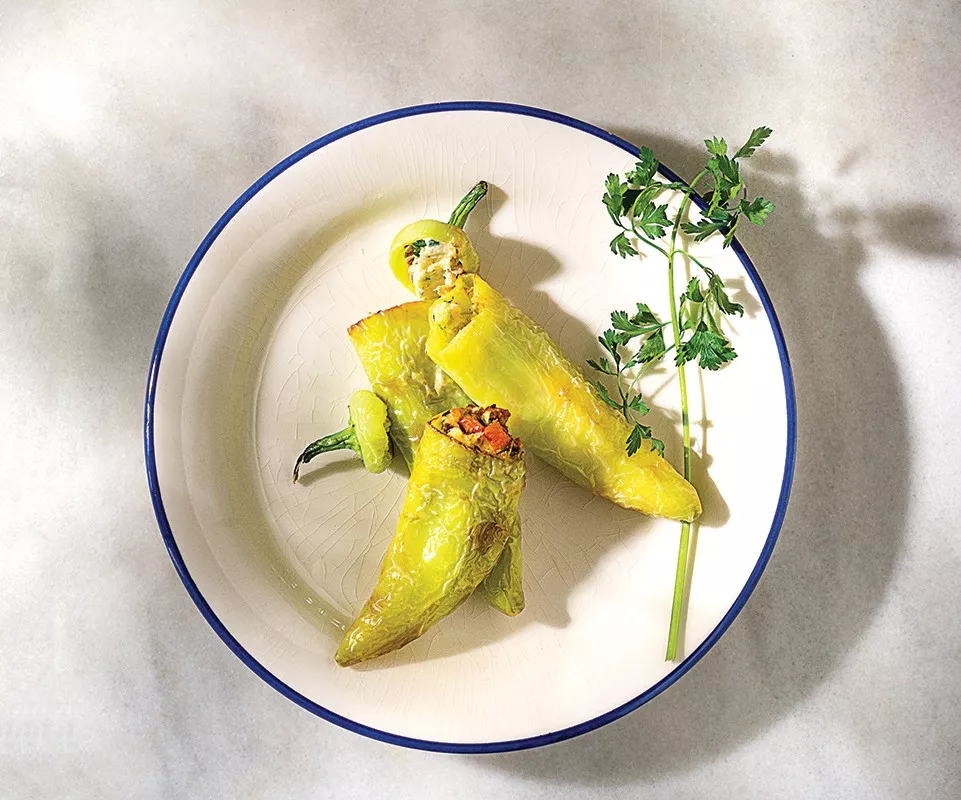 Πιπεριές κέρατο γεμιστές με φρέσκια ντομάτα και καπνιστό τυρί
