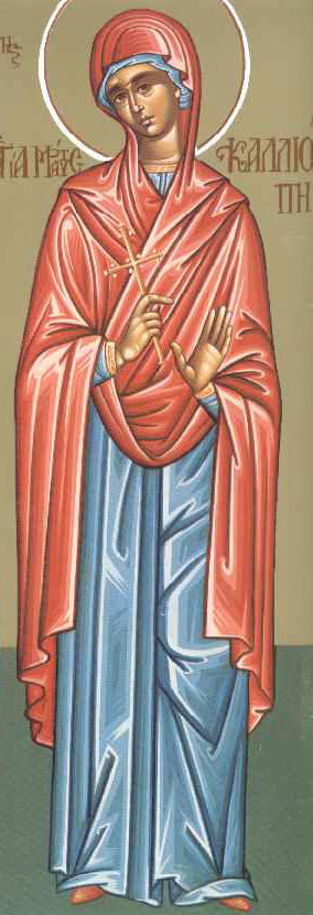 Του Σωτήρος το κάλλος εκ ψυχής αγαπήσασα, καλλιπάρθενε κόρη, Καλλιόπη πανεύφημε, ηγώνισαι στερρώς υπέρ αυτού, και δόξης ηξιώθης θεϊκής, δια τούτο σου την μνήμην την ιεράν, τιμώμεν εκβοώντές σοι, δόξα τω δεδωκότι σοι ισχύν, δόξα τω σε στεφανώσαντι, δόξα τω χορηγούντι δια σού, ημίν πταισμάτων άφεσιν.
