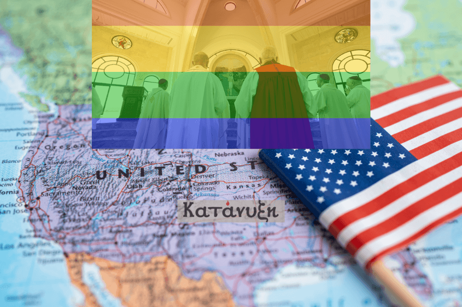 “Λειτουργία” υπερηφανείας για τους ΛΟΑΤΚΙ σε παπικό χώρο λατρείας στις ΗΠΑ. Λίγες μέρες πριν, σε Ακολουθία που τέλεσε ο κος Ελπιδοφόρος και ήταν αφιερωμένη στην ονομαστική εορτή του Πατριάρχη Βαρθολομαίου, υψώθηκε η σημαία της ΛΟΑΤΚΙ κοινότητας, έξω από τον ναό