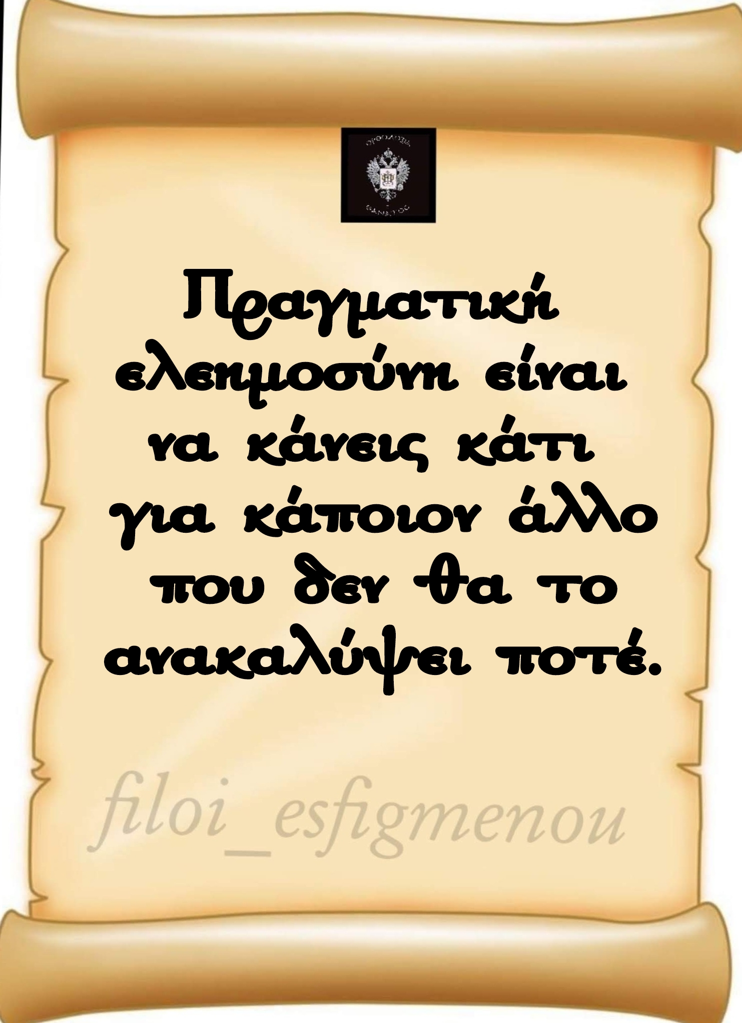 Καλή είναι η ελεημοσύνη, με την οποία φαίνεται πως διασκορπίζεται το πλούτος, στη πραγματικότητα όμως συγκεντρώνεται, γιατί, όπως ένας αγρότης που δίδει στην γη και στη συνέχεια συλλέγει σπόρους, έτσι και η ελεημοσύνη, φαίνεται πως προσφέρεται στους άλλους, ενώ πραγματικά αποκτά αυτός που έδωσε. Το μέγεθος της ελεημοσύνης δεν εκτιμάται ανάλογα με τα χρήματα, αλλά με τη θέληση αυτού που προσφέρει… Η γενναιοδωρία δεν εκτιμάται ανάλογα με το μέγεθος της δωρεάς, αλλά ανάλογα με την διάσταση που έχει το δώρο σε σχέση με το πλούτο του δωρητή. Βασίλισσα των αρετών είναι η ελεημοσύνη, η οποία ως καλύτερο μέσο, ανοίγει γρήγορα τις πόρτες του ουρανού για τους ευσπλαχνικούς.Αγαπητοί φίλοι της σελίδας, παρακαλούμε να είστε ευγενικοί και κόσμιοι στις εκφράσεις σας, με σεβασμό, κατανόηση και αξιοπρέπεια, προς τους συνανθρώπους μας, όπως αρμόζει σε λογικούς ανθρώπους, αλλά και σε ενσυνείδητους Χριστιανούς οι οποίοι κάνουν πράξη τον Ευαγγελικό λόγο, «Αγαπάτε αλλήλους». Φυλάξτε το στόμα σας, από λόγια περιττά, πικρόχολα, ανώφελα, ασκηθείτε στην προσευχή του Ιησού, εγκρατευθείτε και ο Κύριος θα σας περιβάλλει με το ανεκτίμητο δώρο της αγάπης Του. Οι απόψεις της ιστοσελιδας μπορεί να μην ταυτίζονται με τα περιεχόμενα του άρθρου. Τα άρθρα που δημοσιεύονται εδώ, ουδεμία ευθύνη εκ του νόμου φέρουμε καθώς εκφράζουν αποκλειστικά τις απόψεις των συντακτών τους και δεν δεσμεύουν με οποιοδήποτε τρόπο την ιστοσελιδα. Οι διαχειριστές της ιστοσελιδας δεν ευθύνονται για τα σχόλια και τους δεσμούς που περιλαμβάνει. Κάθε γνώμη είναι σεβαστή, αρκεί να αποφεύγονται ύβρεις, ειρωνείες και προσβλητικοί χαρακτηρισμοί, γενικά και εναντίον των συνομιλητών ή των συγγραφέων. Μην δημοσιεύετε άσχετα σχόλια με το θέμα. Με βάση τα παραπάνω με λύπη θα αναγκαζόμαστε να διαγράφουμε τα απρεπή και βλάσφημα σχόλια τα οποία δεν αρμόζουν στον χαρακτήρα και στο ήθος της σελίδας μας χωρίς καμία άλλη προειδοποίηση.