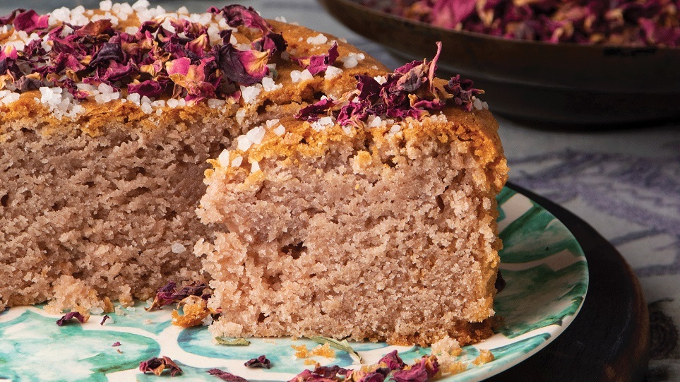 Πασπαλίζουμε με κρυσταλλική ζάχαρη και ψήνουμε σε προθερμασμένο φούρνο στους 160°C για 30΄-40΄. Αφήνουμε να κρυώσει και προαιρετικά σερβίρουμε με αφυδατωμένα ροδοπέταλα.