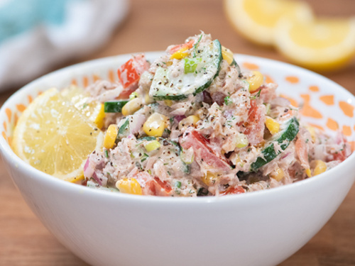 Τονοσαλάτα με ζυμαρικά, κόκκινα φασόλια, αβοκάντο και καλαμπόκι