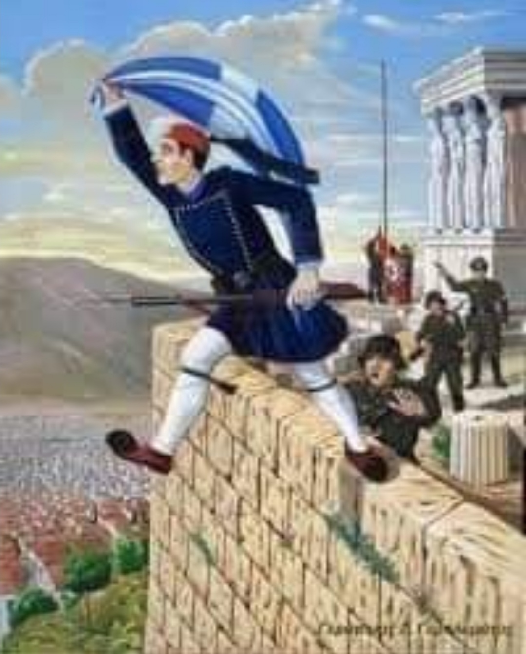 είναι τ' όνομα του ευζώνου (κατά μια άλλη άποψη ήταν 17χρονος νέος της Εθνικής Οργανώσεως Νέων αλλά τι σημασία έχει;).