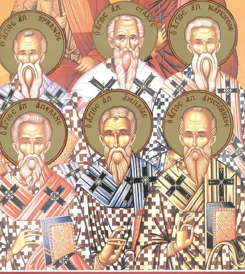 Δευτέρα 31 Οκτωβρίου κατά το ορθόδοξο εορτολόγιο, εορτάζουν οι Άγιοι Στάχυς, Απελλής, Αμπλίας, Ουρβανός, Νάρκισσος και Αριστόβουλος οι Απόστολοι από τους Εβδομήκοντα
