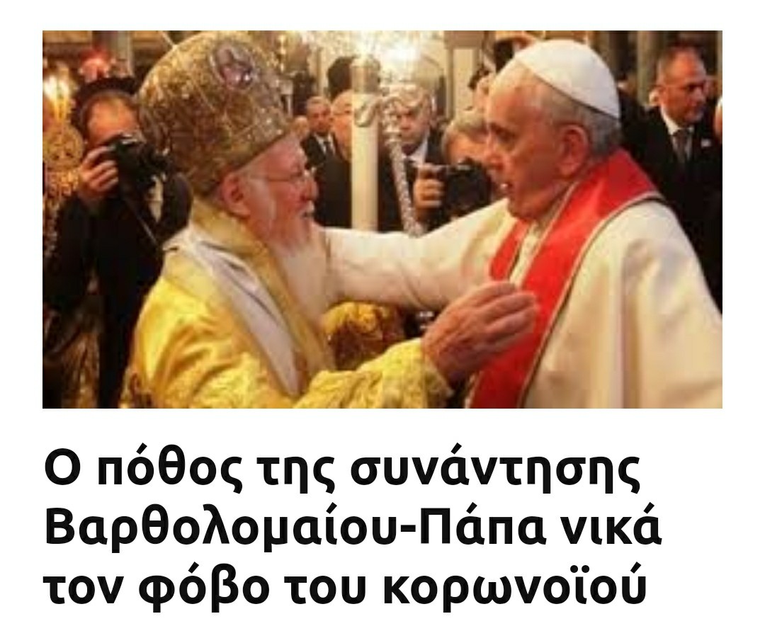 Άραγε, πόσο αθώα μπορεί να είναι μια τέτοια επίσκεψη του Οικουμενικού Πατριάρχη των Ορθοδόξων χριστιανών στον επικεφαλή της παπικής αίρεσης; Ποια τα κίνητρα και ποια τα νήματα που κινούν αυτήν τη συνάντηση εν μέσω τόσο αντίξοων συνθηκών όπως η «πανδημία» του κορωνοϊού, την οποία αυτοί οι εκκλησιαστικοί ηγέτες ασπάζονται και αποδέχονται. Μια επίσκεψη και μια συνάντηση, που υπερβαίνει όλους τους φόβους, ακόμα και αυτόν τον φόβο του κορωνοϊού, προμηνύει πως κάτι πολύ σοβαρό ετοιμάζεται. Γνωρίζουμε από τα γεγονότα ότι η συνάντηση του Οικουμενικού Πατριάρχη με τον Πάπα δε γίνεται προς συμφέρον της Αγίας πίστης μας και της επικράτησης της Αλήθειας του Χριστού μας.