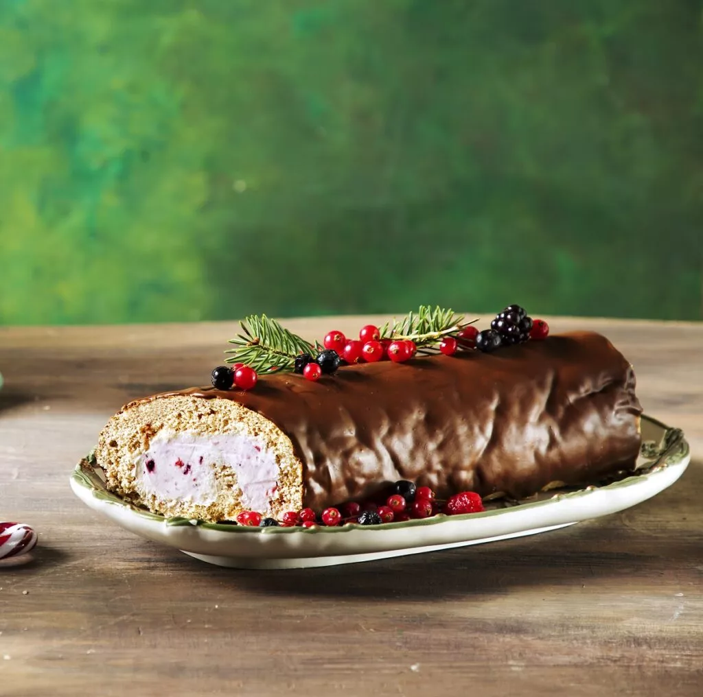 Κορμός μπισκουί με φρούτα του δάσους και σοκολάτα