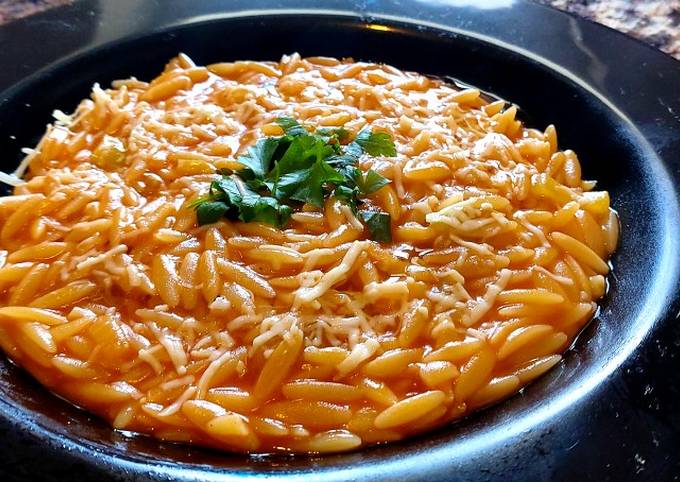 Κριθαράκι με λαχανικά και κόκκινο πιπέρι
