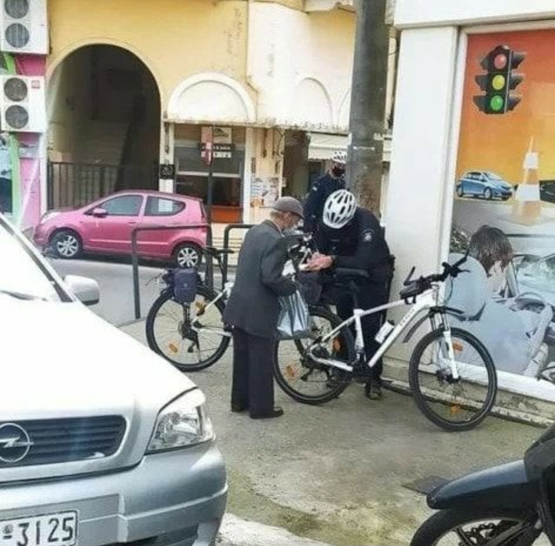 Η φωτογραφία που κάνει τον γύρο του ελληνικού διαδικτύου και των μέσων κοινωνικής δικτύωσης τις τελευταίες ώρες, αποτυπώνει την στιγμή που ένας αστυνομικός στην Κέρκυρα επιβάλλει πρόστιμο σε έναν γεράκο επειδή δεν φορούσε σωστά τη μάσκα του. Ο υπερβάλλοντας ζήλος του αστυνομικού να επιβάλλει 150 ευρώ πρόστιμο στον 95χρονο για μη σωστή χρήση μάσκας, ενώ θα μπορούσε να αρκεστεί σε μια σύσταση, ισοδυναμεί με την κλοπή της μισής του σύνταξης.