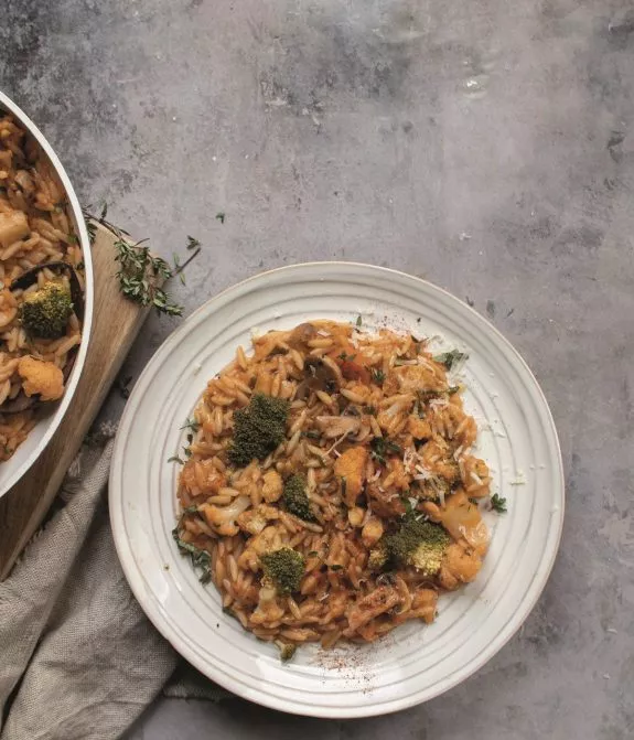 Κριθαράκι με λαχανικά και κόκκινο πιπέρι