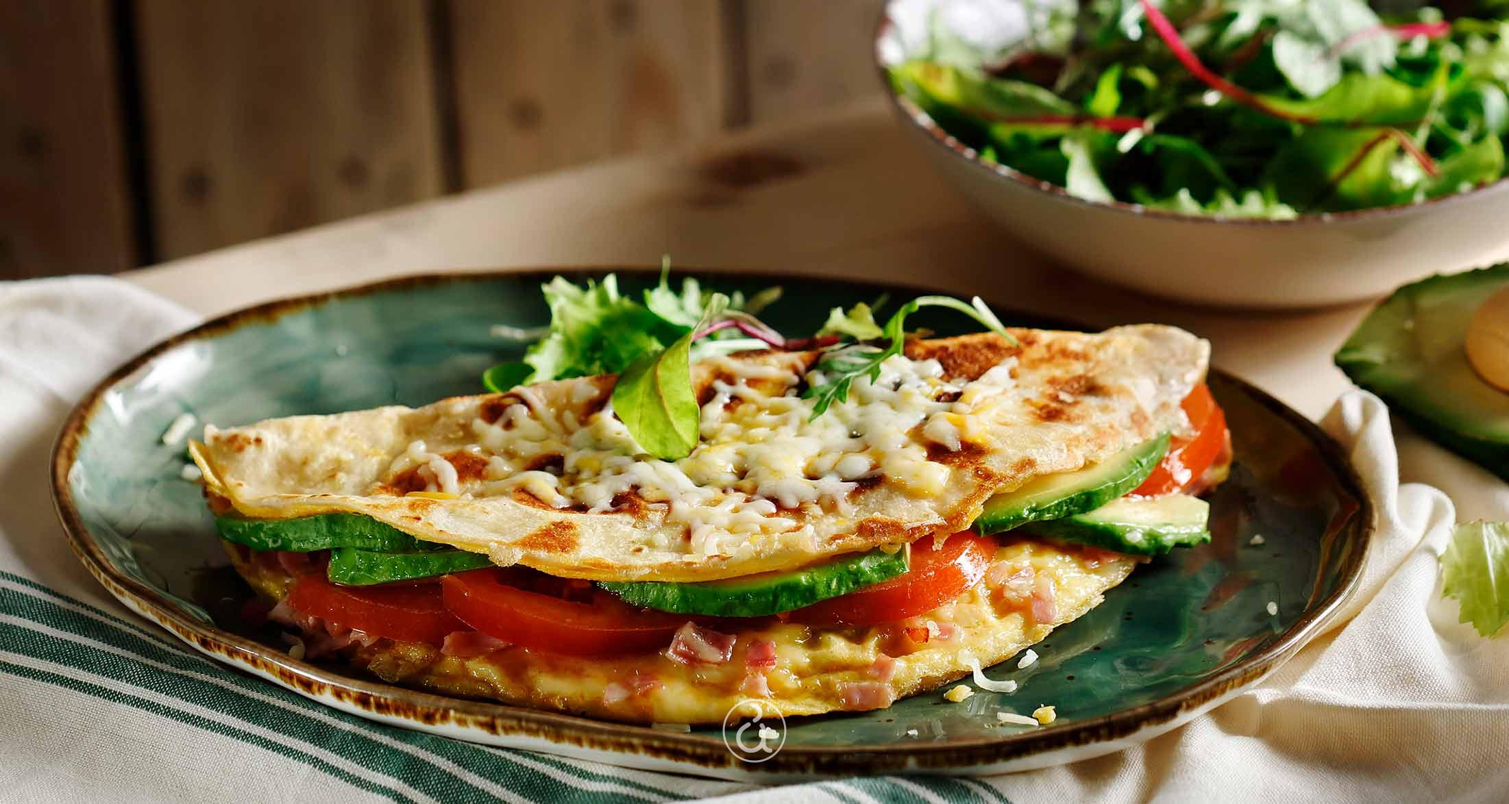 Ακουμπάμε την τορτίγια πάνω στα υγρά αυγά, τη βουτάμε στην υγρή επιφάνεια των αυγών και από τις δύο πλευρές και να ντυθεί ολόγυρα με αυγό.