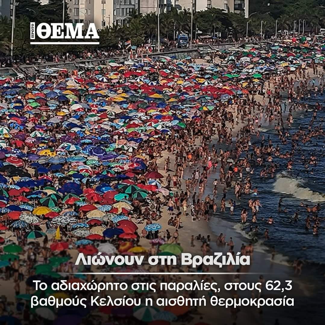 «Αποφύγετε κάθε παρατεταμένη έκθεση στον ήλιο. Μείνετε ενυδατωμένοι» προειδοποίησε μέσω της πλατφόρμας Χ ο δήμος του Ρίο, ανακοινώνοντας ότι η αισθητή θερμοκρασία έφτασε τους 62,3 βαθμούς Κελσίου στις 9.55 το πρωί στην Γκαρατίμπα, μια συνοικία στα δυτικά προάστια της πόλης. Χθες στην ίδια περιοχή η αισθητή θερμοκρασία ήταν 60,1°C, σπάζοντας κάθε ρεκόρ από το 2014, όταν άρχισαν αυτές οι μετρήσεις.